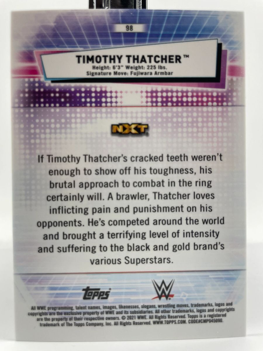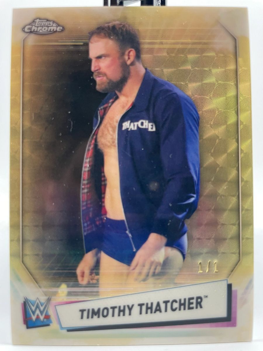 2021 Topps Chrome WWE Timothy Thatcher SuperFractor Parallel Card 1 of 1. The odds of pulling this card was 1 in every 5,135 hobby boxes. This is a very rare card, in excellent condition. Card was pulled and immediately put in a soft sleeve and then toploader, the same way it will be shipped.