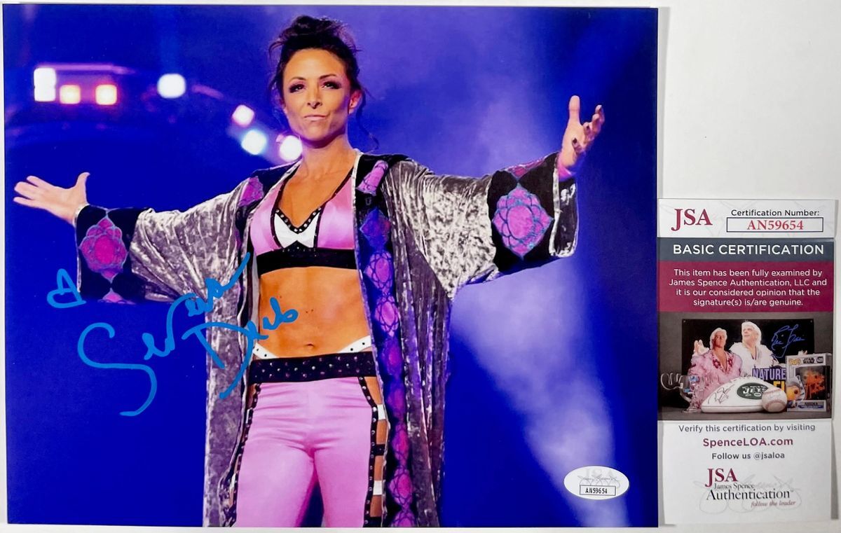 Professionally printed 8×10 photo, hand signed in person by All Elite Wrestling (AEW) Women’s Wrestler Serena Deeb. Before coming to AEW, Serena spent time in the WWE and was a member of CM Punk’s Straight Edge Society. This is a clean, well placed signature that really pops off of this crisp, professionally printed 8×10 photo. Item has been authenticated by James Spence Authentications, and includes the JSA Certificate Of Authenticity card. JSA COA# AN59654