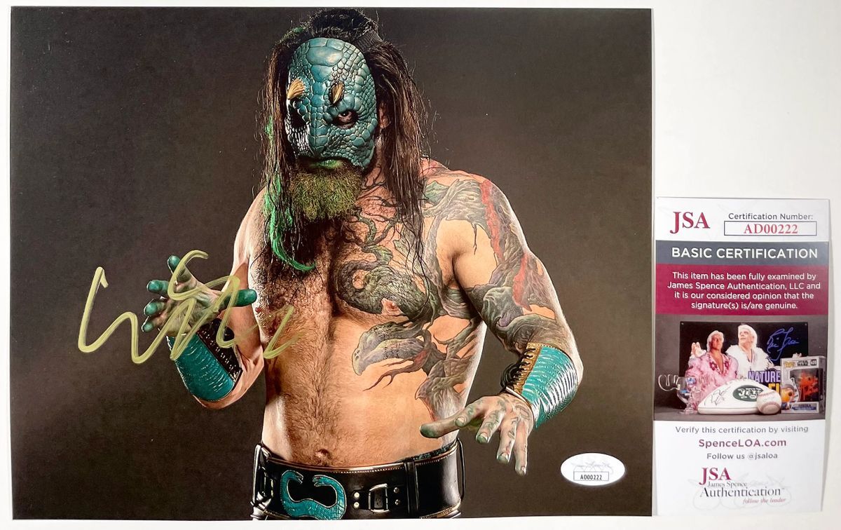 Professionally printed 8×10 photo, hand signed by former one half of the All Elite Wrestling (AEW) Tag Team Champions as a member of Jurassic Express, Luchasaurus. This is a clean, well placed signature that really pops off of this crisp, professionally printed 8×10 photo. Item has been authenticated by James Spence Authentications, and includes the JSA Certificate Of Authenticity card.