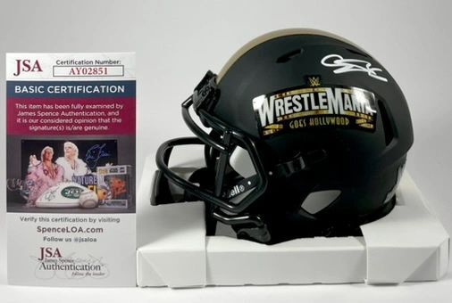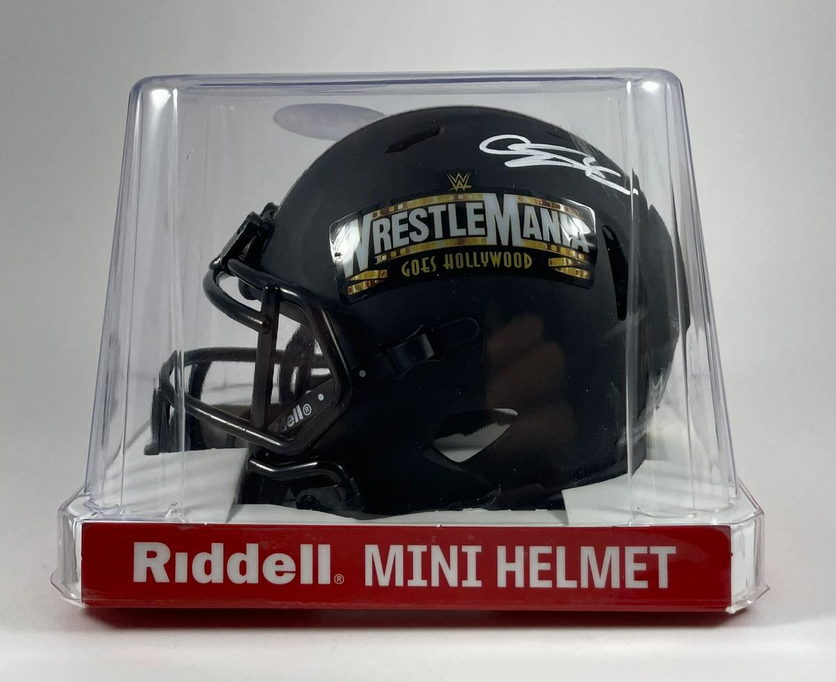 WWE WrestleMania Goes Hollywood Riddell Speed Mini Helmet, hand signed in person by Undisputed WWE Champion, “The American Nightmare” Cody Rhodes. This is a clean, well placed signature, signed in a flowing White 2MM Molotow paint pen that really pops off of this WrestleMania 39 collectible Mini Helmet. Item has been authenticated by James Spence Authentications, one of the most reputable third-party authentication companies in the world and includes the JSA Certificate of Authenticity card. JSA COA# AY02851