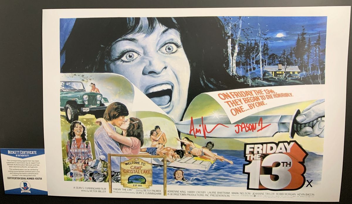 Professionally printed Friday The 13th 11×17 movie poster, hand signed by actor Ari Lehman who played the role of Jason Voorhees, The Boy In The Lake in the original Friday The 13th film. This is a clean, well placed signature, with “Jason 1” inscription on this crisp, professionally printed 11×17 movie poster. Item has been authenticated by Beckett, the leader in authenticating services, and includes the Beckett Certificate of Authenticity card. BAS COA# V59756