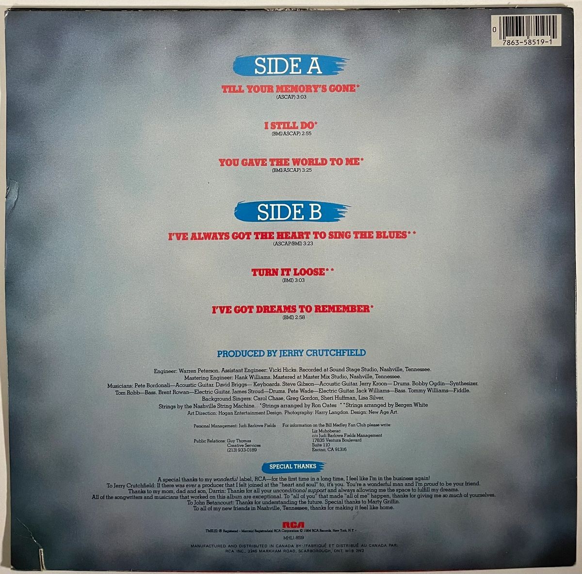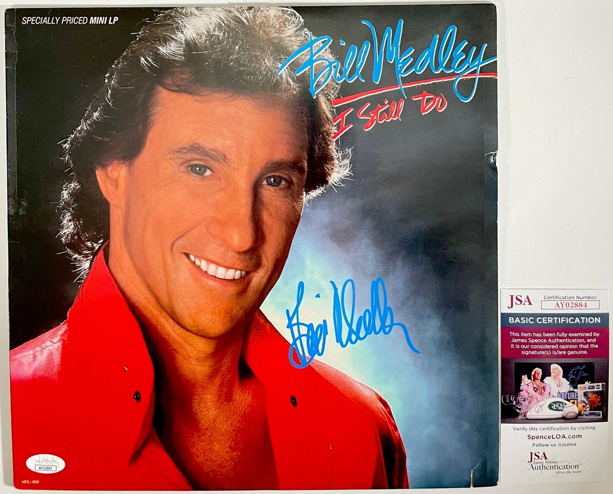 Bill Medley “I Still Do” Vinyl Record LP with dust cover jacket, hand signed in person by legendary musician Bill Medley of The Righteous Brothers duo. This is a clean, well placed signature, signed in a flowing Blue 2MM Decco Paint Pen that really jumps off the cover of this Bill Medley “I Still Do” Vinyl record. Item has been authenticated by James Spence Authentications, one of the most reputable third party authentication companies in the world, and includes the JSA Certificate of Authenticity card. JSA COA# AY02884