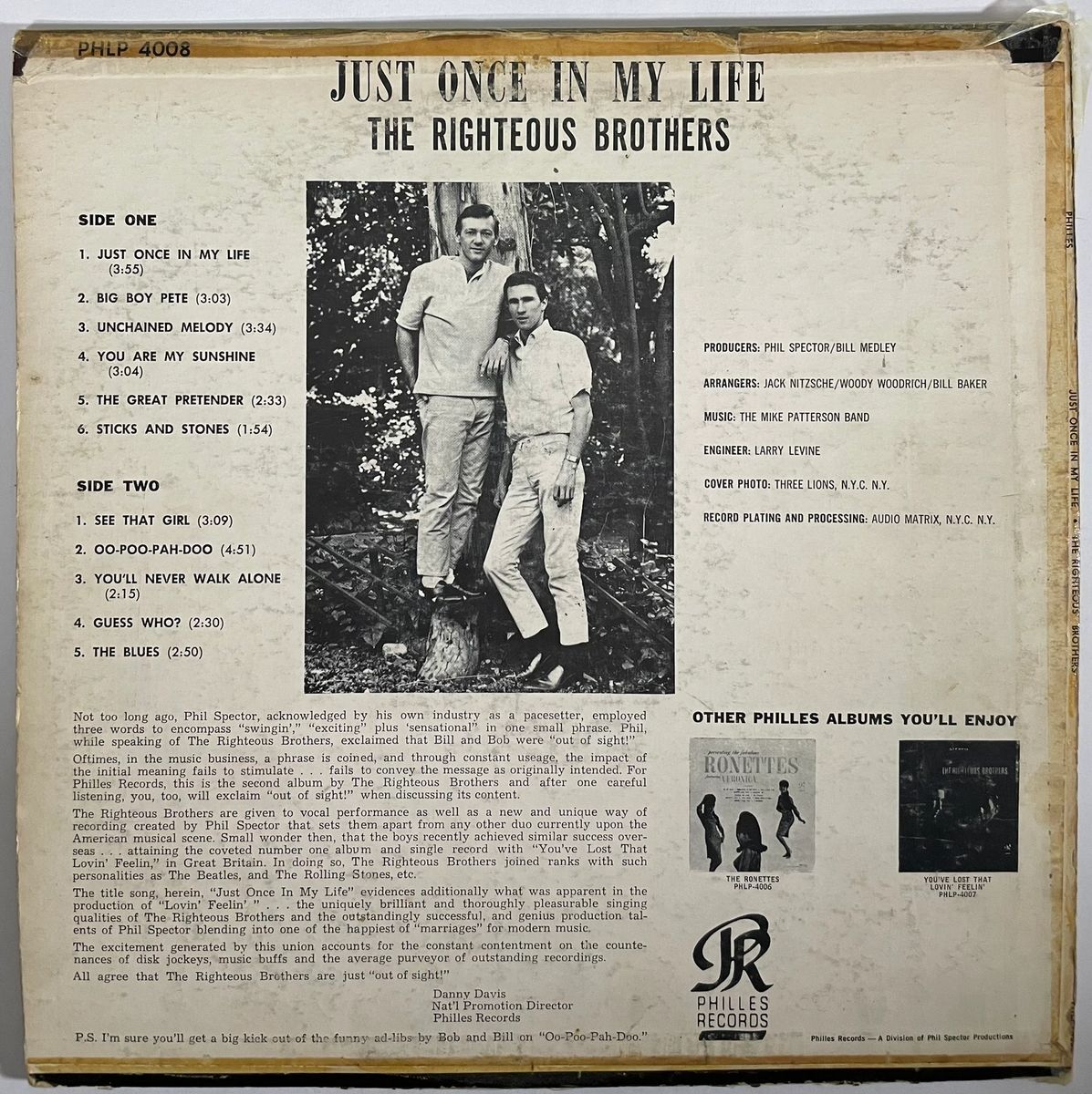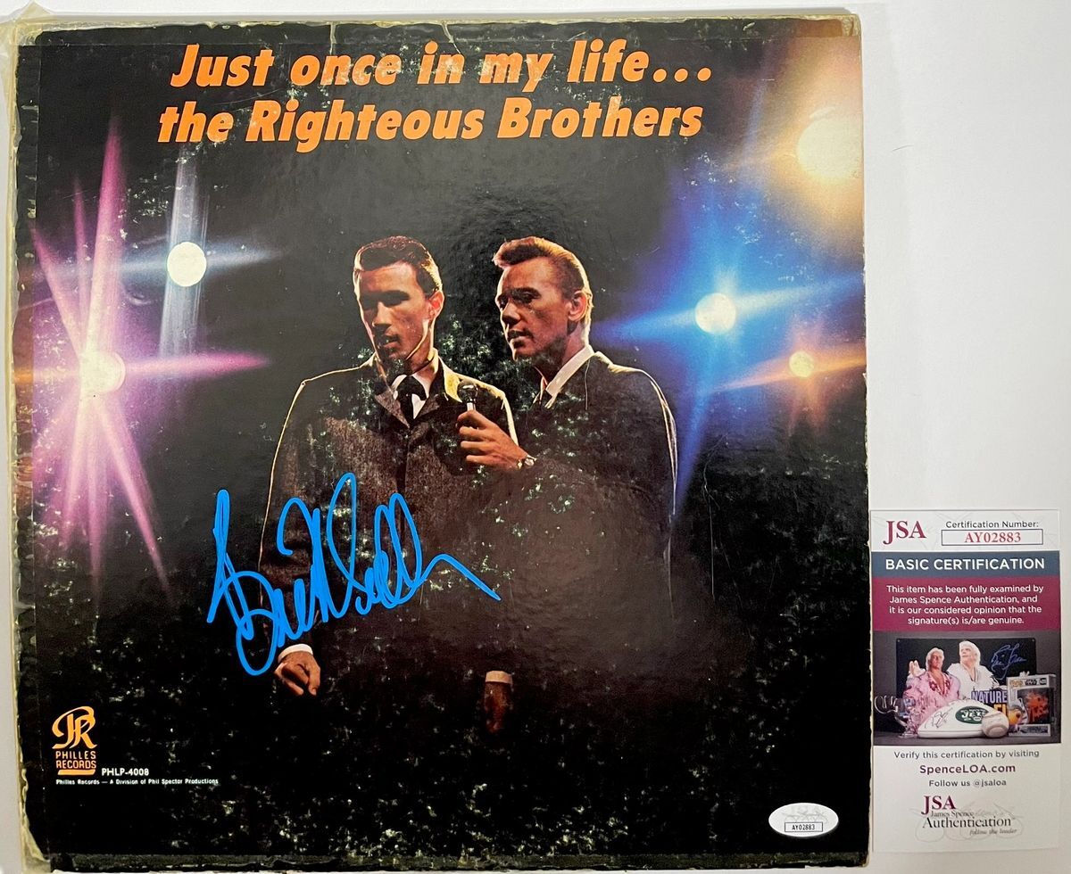 Just Once In My Life… The Righteous Brothers Vinyl Record LP with dust cover jacket, hand signed in person by legendary musician Bill Medley of The Righteous Brothers duo. This is a clean, well placed signature, signed in a flowing Blue 2MM Decco Paint Pen that really jumps off the cover of this Just Once In My Life… the Righteous Brothers Vinyl record. Please be advised before purchasing there is some wear to the dust cover jacket, however Vinyl still displays great as you can see in the photos. Item has been authenticated by James Spence Authentications, one of the most reputable third party authentication companies in the world, and includes the JSA Certificate of Authenticity card. JSA COA# AY02883