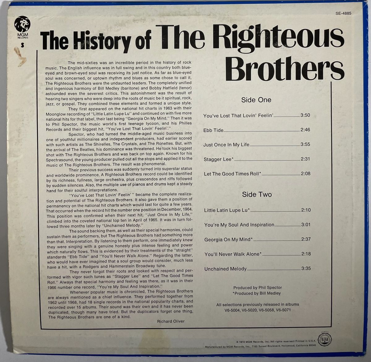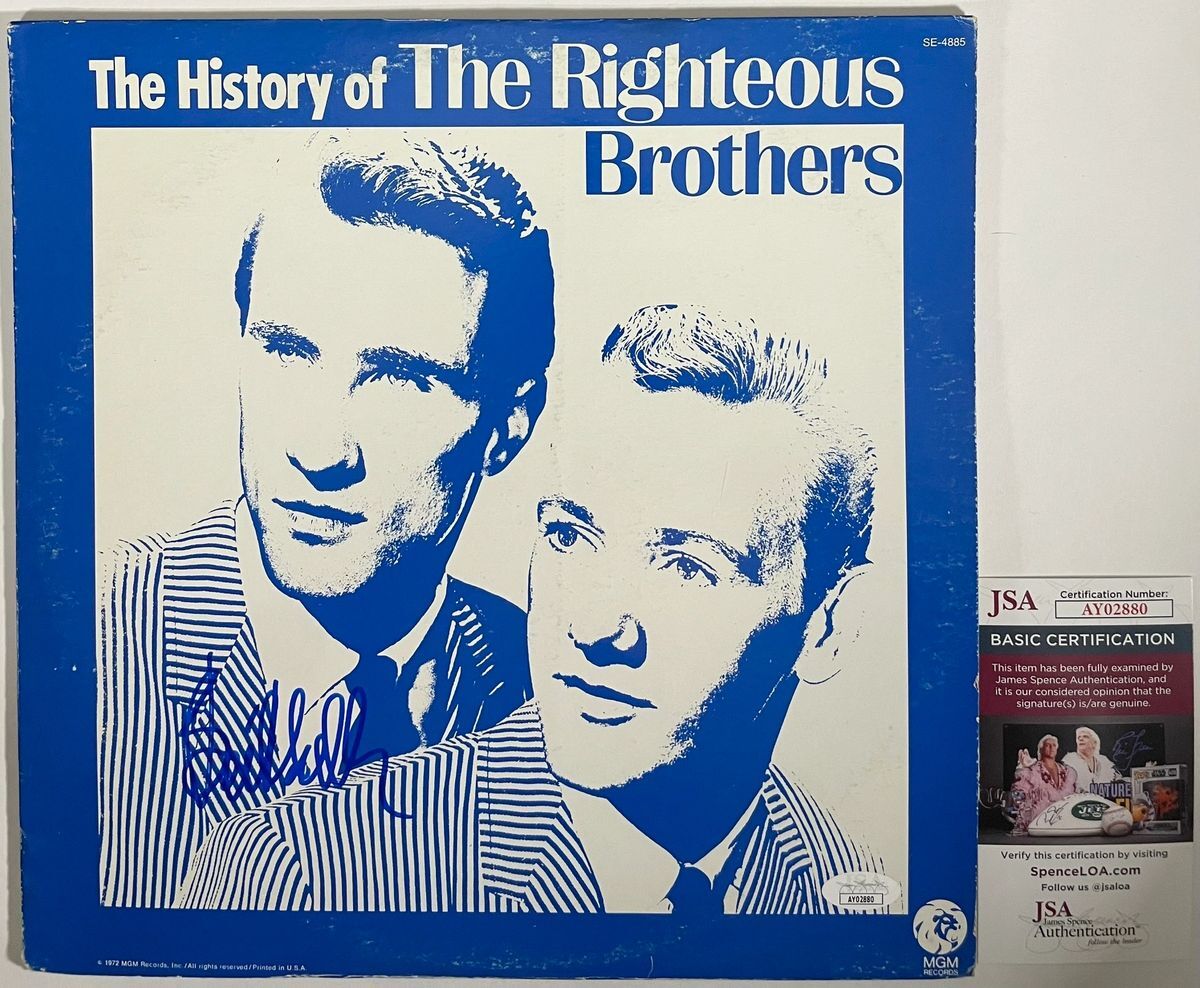 The History Of The Righteous Brothers Vinyl Record LP with dust cover jacket, hand signed in person by legendary musician Bill Medley of The Righteous Brothers duo. This is a clean, well placed signature, signed in a flowing Blue Sharpie that really jumps off the cover of this The History Of The Righteous Brothers Vinyl record. Please be advised before purchasing there is some minor wear to the dust cover jacket, however Vinyl still displays great as you can see in the photos. Item has been authenticated by James Spence Authentications, one of the most reputable third party authentication companies in the world, and includes the JSA Certificate of Authenticity card. JSA COA# AY02880