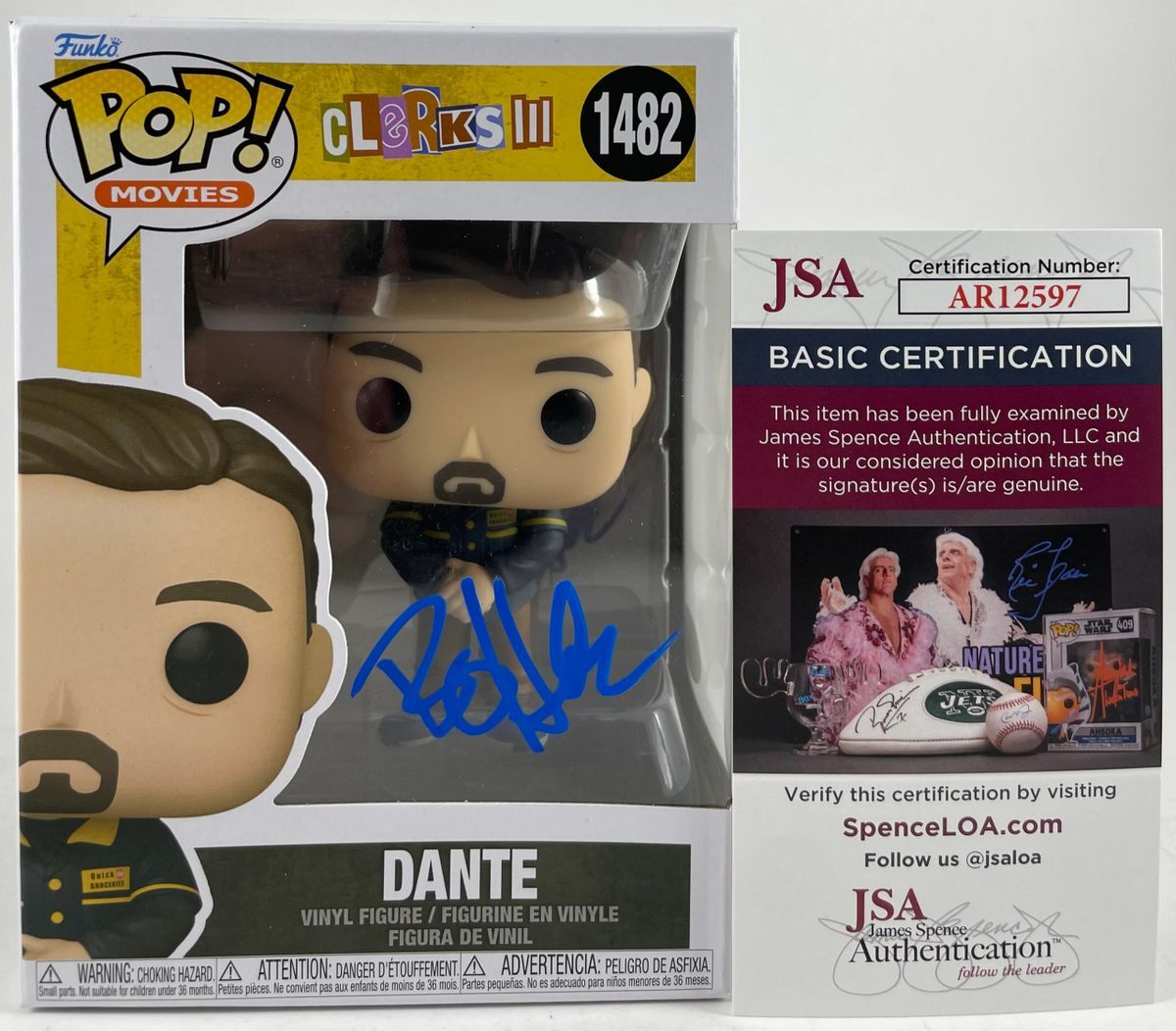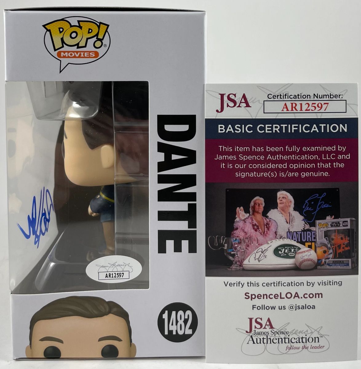 Clerks III Dante Funko POP! Vinyl Figure #1482, hand signed in person by actor Brian O’Halloran who played the role of Dante in all of the Clerks films, including Clerks III. This is a clean, well placed signature, signed in a flowing Blue Paint Pen that really pops off of the plastic. Item has been authenticated by James Spence Authentications, one of the most reputable third party authentication companies in the world, and includes the JSA Certificate of Authenticity card. JSA COA# AR12597