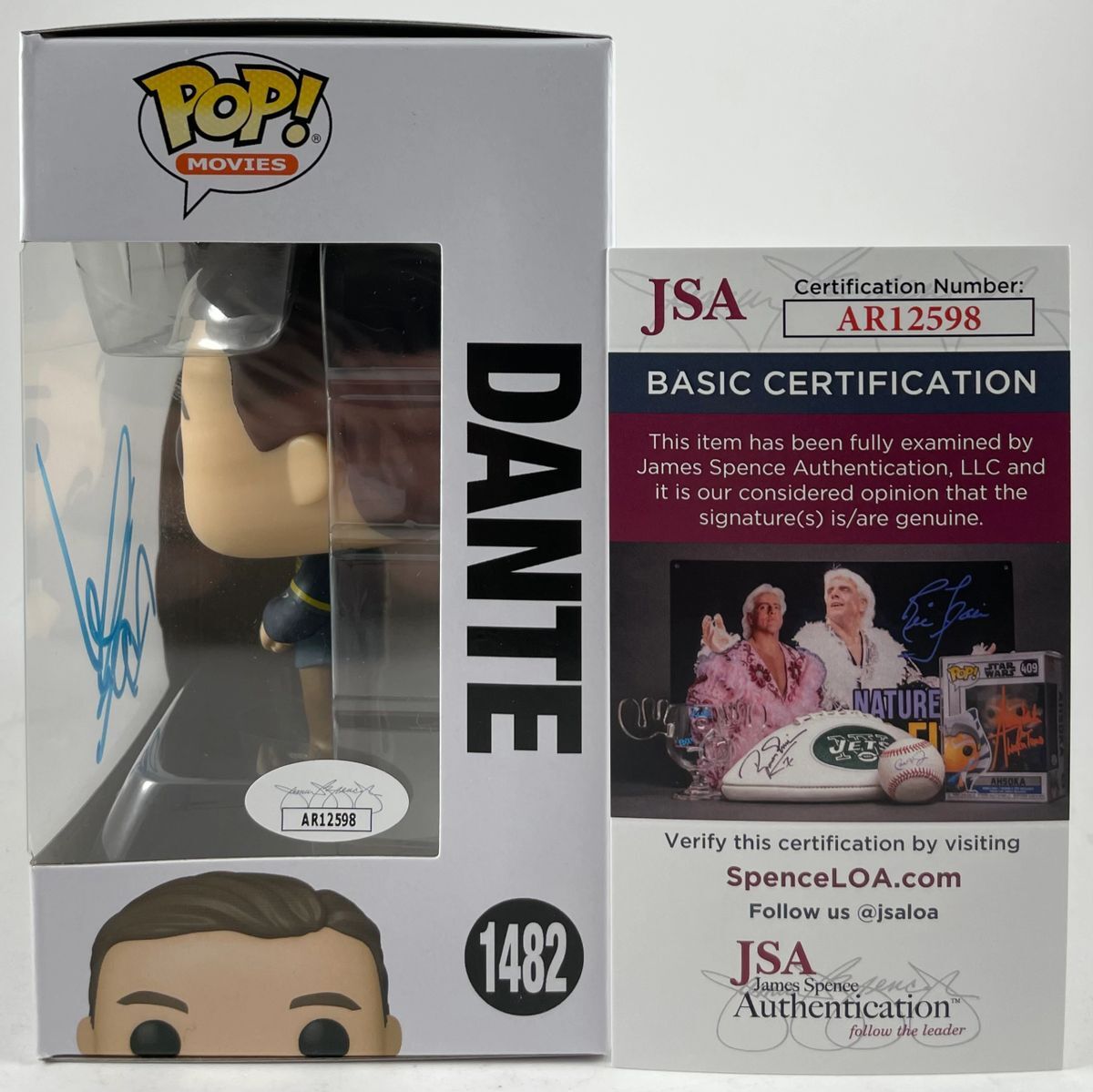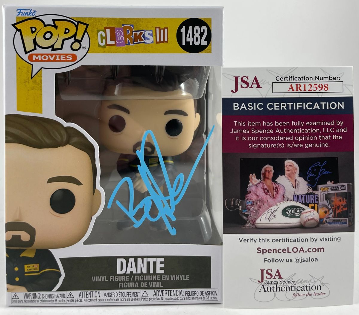 Clerks III Dante Funko POP! Vinyl Figure #1482, hand signed in person by actor Brian O’Halloran who played the role of Dante in all of the Clerks films, including Clerks III. This is a clean, well placed signature, signed in a flowing Blue Paint Pen that really pops off of the plastic. Item has been authenticated by James Spence Authentications, one of the most reputable third party authentication companies in the world, and includes the JSA Certificate of Authenticity card. JSA COA# AR12598