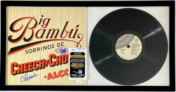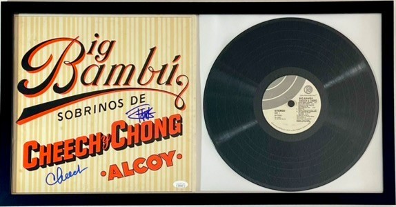 Cheech & Chong’s Second Comedy Album Big Bambu 33 1/3 RPM Vinyl LP Record with Dust Jacket, hand signed in person by Stoner Comedy legends Cheech Marin and Tommy Chong. This is two clean, well placed signatures, signed in a matching, flowing, Blue Sharpie that really pops off of this Cheech & Chong “Big Bambu” Vinyl LP. Both the signed Dust Jacket and Vinyl LP Record have been mounted inside of this sleek, ready to hang, framed display. Item has been authenticated by James Spence Authentication, one of the most reputable third-party authentication companies in the world, and includes the JSA Certificate Of Authenticity card.