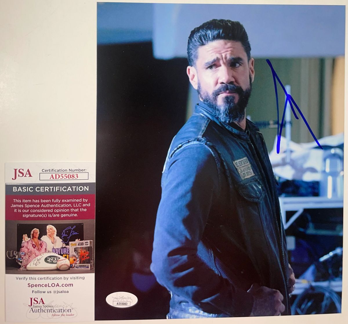 Professionally printed 8×10 photo, hand signed by actor Claytdon Cardenas who stars on the hit television series Mayans M.C. as Angel Reyes. This is a clean, well placed signature that really pops off of this crisp, professionally printed 8×10 photo. Item has been authenticated by James Spence Authentications , and includes the JSA Certificate of Authenticity card.