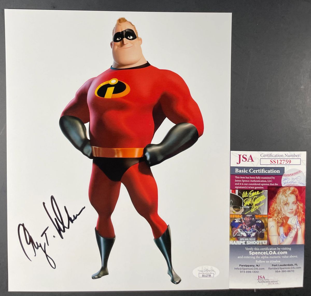 Professionally printed 8×10 photo, hand signed by actor Craig T. Nelson who is credited as the voice of Mr. Incredible in the hit Disney Pixar film The Incredibles. This is a clean, well placed signature that really pops off of this crisp, professionally printed 8×10 photo. Item has been authenticated by James Spence Authentications, and includes the JSA Certificate Of Authenticity card. JSA COA# SS12759