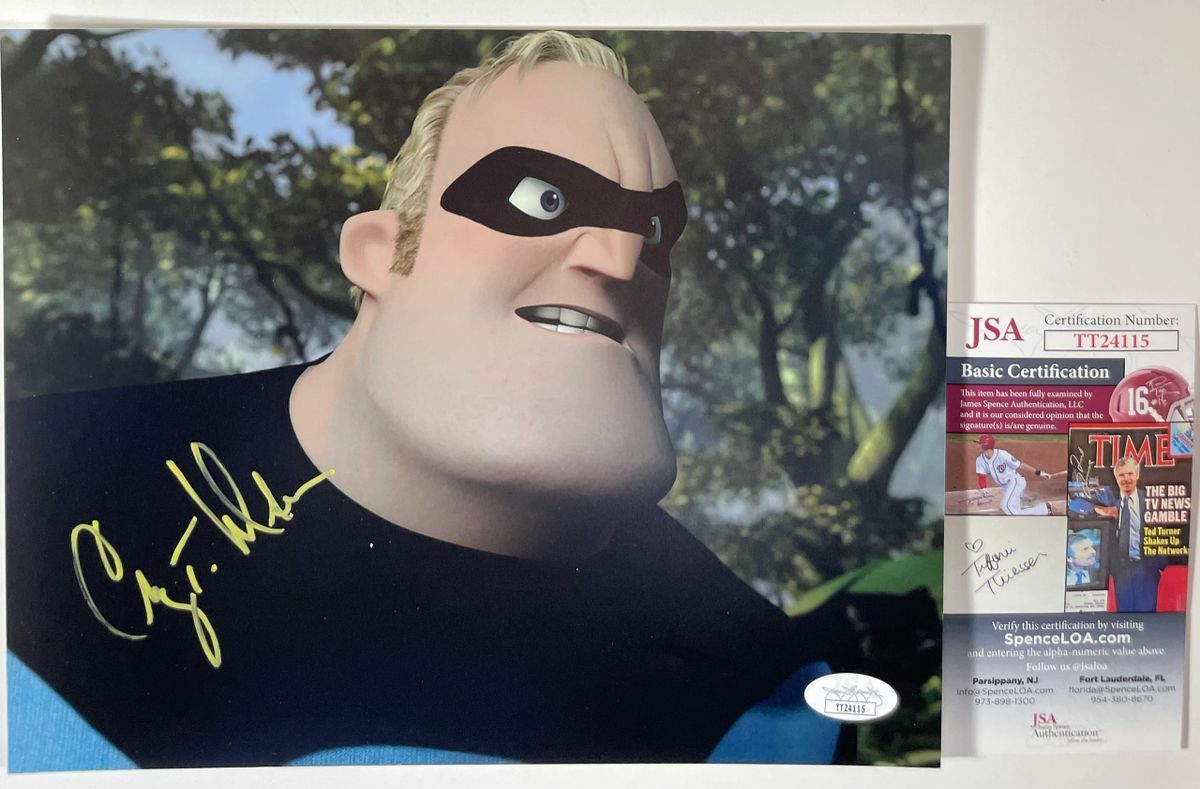 Professionally printed 8×10 photo, hand signed by actor Craig T. Nelson who is credited with the voice work of Mr. Incredible in the hit Disney Pixar film The Incredibles. This is a clean, well placed signature that really pops off of this crisp, professionally printed 8×10 photo. Item has been authenticated by James Spence Authentications, and includes the JSA Certificate Of Authenticity card.