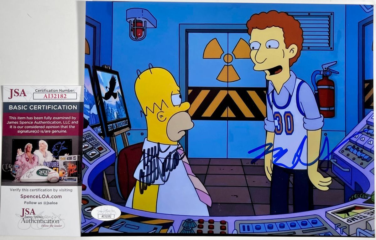 Professionally printed 8×10 photo, hand signed in person by the voice of Homer Simpson and numerous other Simpsons characters, Dan Castellaneta as well as actor Michael Rapaport who appeared on the Simpsons as power plant intern Mike Wegman. This is two clean, well placed signatures that really pop off of this crisp, professionally printed 8×10 photo. Item has been authenticated by James Spence Authentications, one of the most reputable third party authentication companies in the world, and includes the JSA Certificate of Authenticity card. JSA COA# AI32182