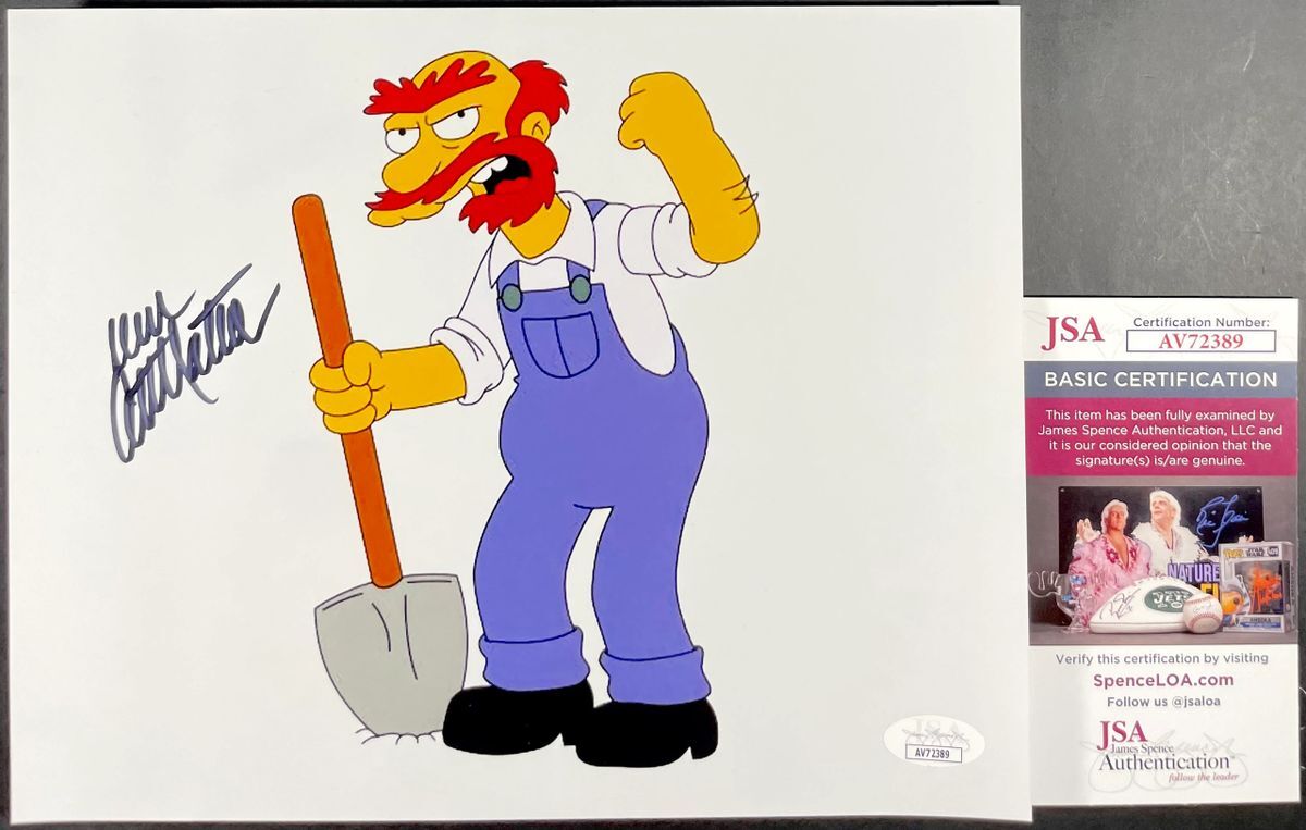 Professionally printed 8×10 photo, hand signed in person by talented voice actor Dan Castellaneta who provides the voice of Homer Simpson, and numerous other popular Simpsons characters including, Groundskeeper Willie, Krusty The Clown, Grampa Simpson, Mayor Quimby, and Barney Gumble just to name a few. This is a clean, well placed signature, signed in a flowing Black Sharpie that really pops off of this crisp, professionally printed 8×10 photo. Item has been authenticated by James Spence Authentications, one of the most reputable third party authentication companies in the world, and includes the JSA Certificate of Authenticity card.