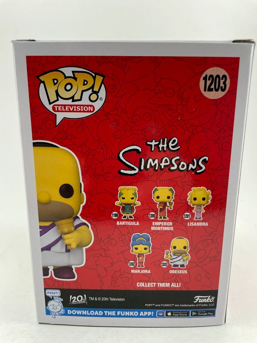 The Simpsons Obeseus Funko POP! Vinyl Figure #1203, hand signed in person by talented Simpsons voice actor Dan Castellaneta who is the voice of Homer Simpson and numerous other well known characters from The Simpsons Television Series. This is a clean, well placed signature, signed in a flowing Blue 2MM Decco paint pen that really pops off of the plastic. Item has been authenticated by James Spence Authentications, one of the most reputable third-party authentication companies in the world and includes the JSA Certificate of Authenticity card. JSA COA# AI03868