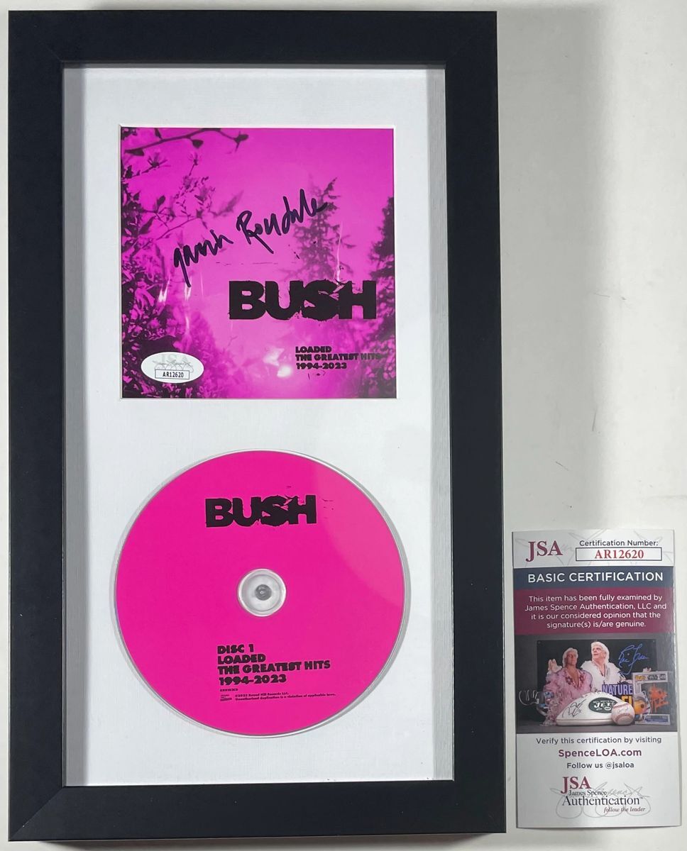 Bush “Loaded The Greatest Hits 1994-2023” CD and signed CD Booklet, hand signed in person by long time Bush lead Singer Gavin Rossdale. This is a clean, well paced signature, signed in a flowing Black Sharpie that really pops off of this signed Bush “Loaded The Greatest Hits” CD Booklet, inside of this amazing framed and matted display which includes the CD. Item has been authenticated by James Spence Authentications, one of the most reputable third party authentication companies in the world, and includes the JSA Certificate Of Authenticity card.