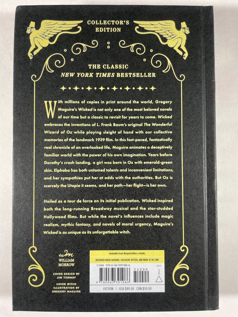 Wicked Collectors Edition Hardcover Book hand signed by author Gregory Maguire. Autograph is guaranteed to pass any reputable third-party authentication company or a full refund upon return. The perfect Christmas gift for any Wicked fan or autograph collector.