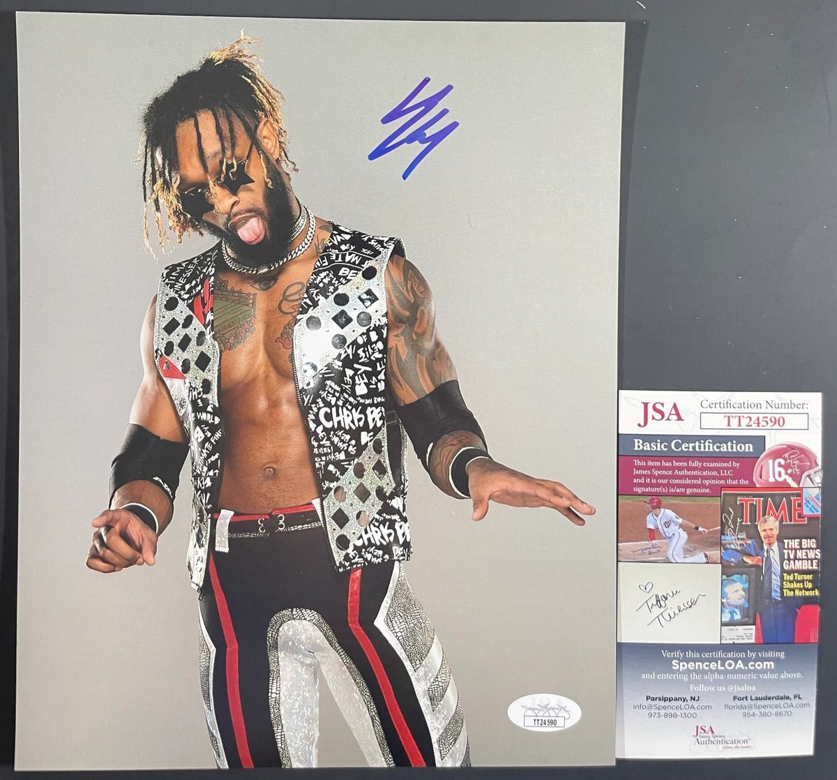Professionally printed 8×10 photo, hand signed by former Impact Wrestling X Division Champion, Bullet Club member Chris Bey. This is a clean, well placed signature that really pops off of this crisp, professionally printed 8×10 photo. Item has been authenticated by James Spence Authentications and includes the JSA Certificate Of Authenticity card.