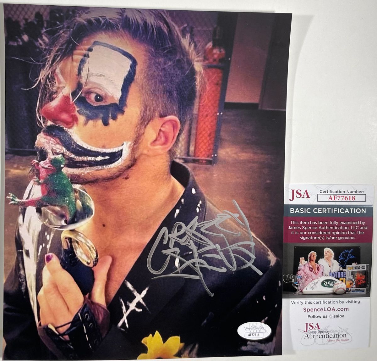 Professionally printed 8×10 photo, hand signed by IMPACT Wrestling, Decay stable member, Crazzy Steve. This is a clean, well placed signature that really pops off of this crisp, professionally printed 8×10 photo. Item has been authenticated by James Spence Authentications and includes the JSA Certificate Of Authenticity card.