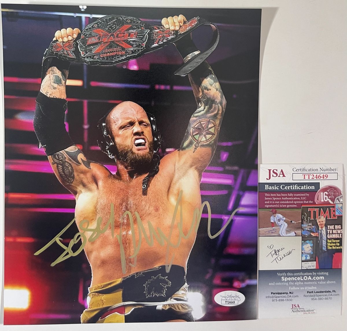 Professionally printed 8×10 photo, hand signed by IMPACT Wrestling Triple Crown Winner Josh Alexander. This is a clean, well placed signature that really pops off of this crisp, professionally printed 8×10 photo. Item has been authenticated by James Spence Authentications and includes the JSA Certificate Of Authenticity card.