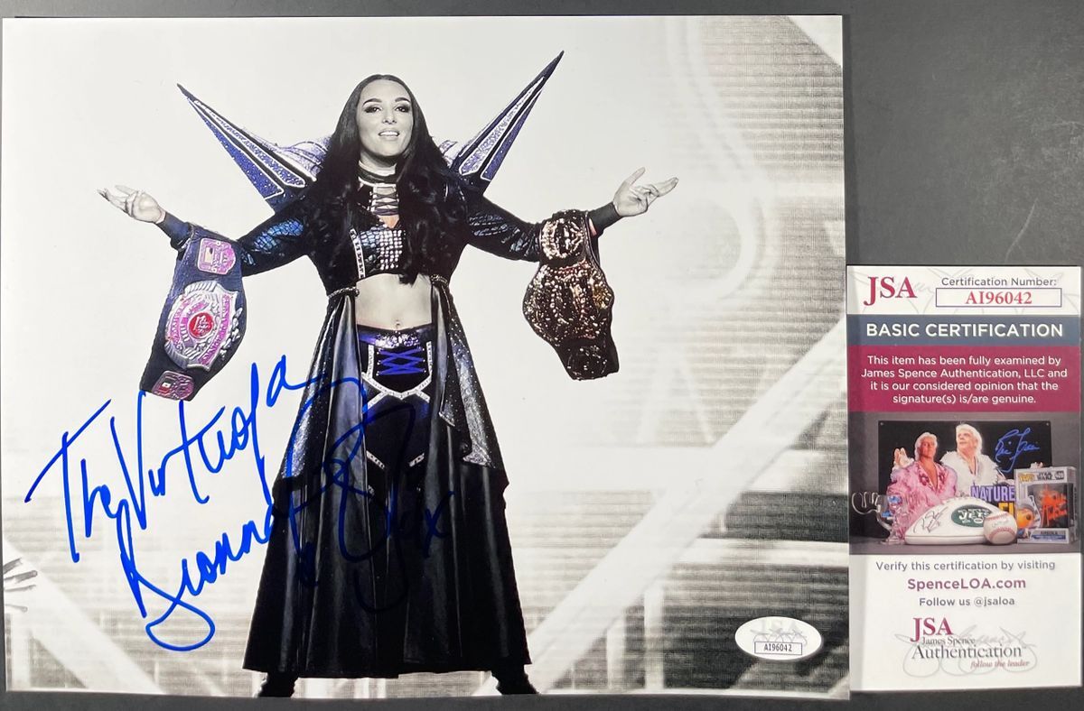 Professionally printed spotlight 8×10 photo, hand signed by former WWE NXT Superstar and three time IMPACT Wrestling Knockouts Champion, “The Virtuosa” Deonna Purrazzo. This is a clean, well placed signature, with a “The Virtuosa” inscription that really pops off of this crisp, professionally printed spotlight 8×10 photo. Item has been authenticated by James Spence Authentications, and includes the JSA Certificate Of Authenticity card.