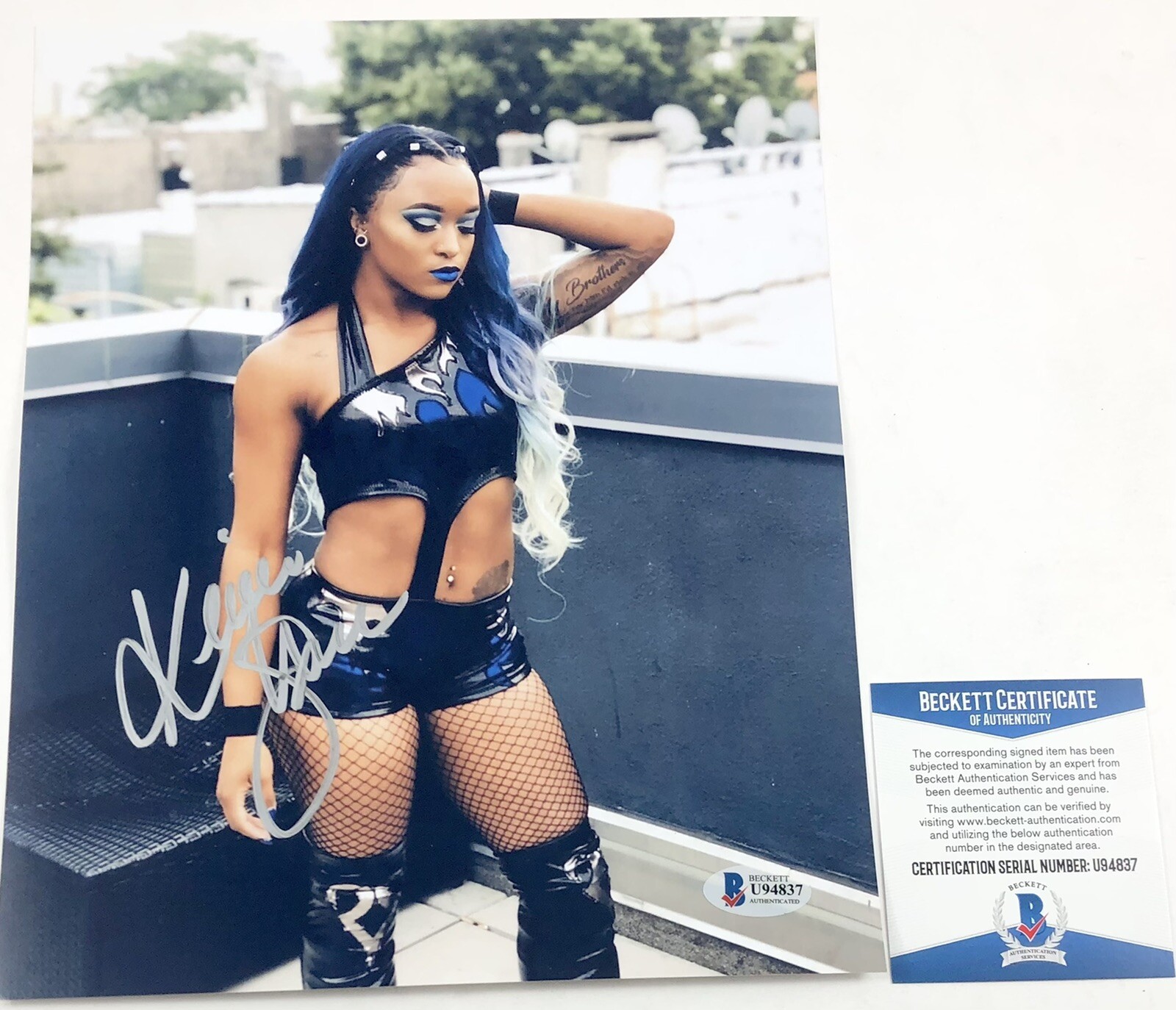 This listing is for a crisp 8X10 photo, hand signed by the incredibly talented TNA Impact Wrestling Knockout Kiera Hogan.  This is a clean, well placed signature, on a crisp, professionally printed 8×10 photo.  A definite must own piece for any serious collector or fan.  This item has been authenticated by Beckett, the leader in authenticating services.  Matching Beckett Certificate Of Authenticity card is included.