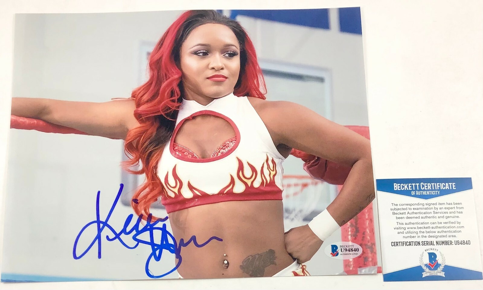 This listing is for a crisp 8X10 photo, hand signed by the incredibly talented TNA Impact Wrestling Knockout Kiera Hogan. This is a clean, well placed signature, on a crisp, professionally printed 8×10 photo. A definite must own piece for any serious collector or fan. This item has been authenticated by Beckett, the leader in authenticating services. Matching Beckett Certificate Of Authenticity card is included.
