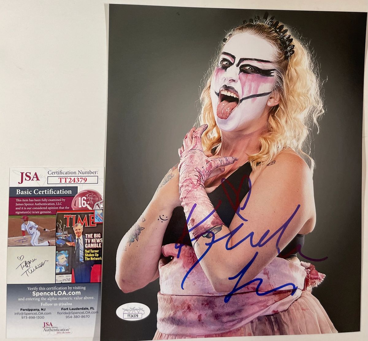 Professionally printed 8×10 photo, hand signed by former WWE NXT Superstar and current IMPACT Wrestling Knockout, Kimber Lee. This is a clean, well placed signature that really pops off of this crisp, professionally printed 8×10 photo. Item has been authenticated by James Spence Authentications, and includes the JSA Certificate Of Authenticity card.