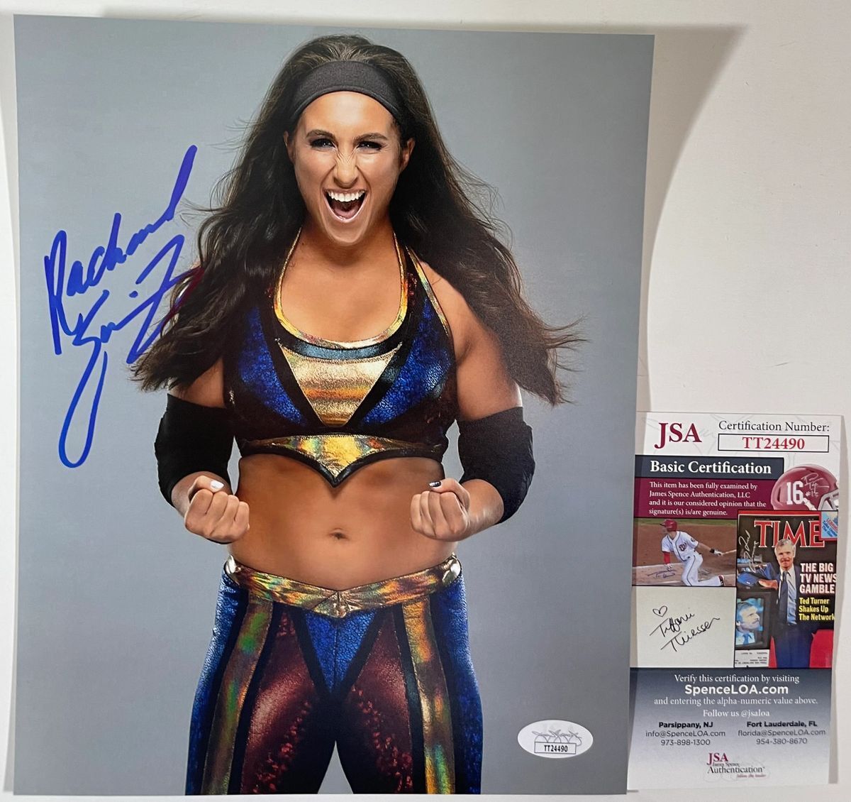 Professionally printed 8×10 photo, hand signed by IMPACT Wrestling Knockout Rachael Ellering. This is a clean, well placed signature that really pops off of this crisp, professionally printed 8×10 photo. Item has been authenticated by James Spence Authentications, and includes the JSA Certificate Of Authenticity card.