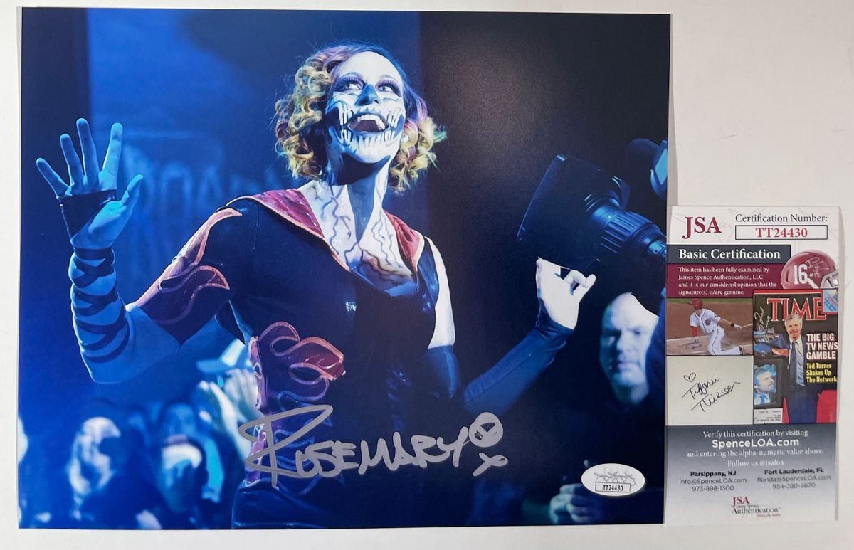 Professionally printed 8×10 photo, hand signed by former IMPACT Wrestling Knockout Champion and Knockouts Tag Team Champion, Decay member Rosemary. This is a clean, well placed signature that really pops off of this crisp, professionally printed 8×10 photo. Item has been authenticated by James Spence Authentications, and includes the JSA Certificate Of Authenticity card.