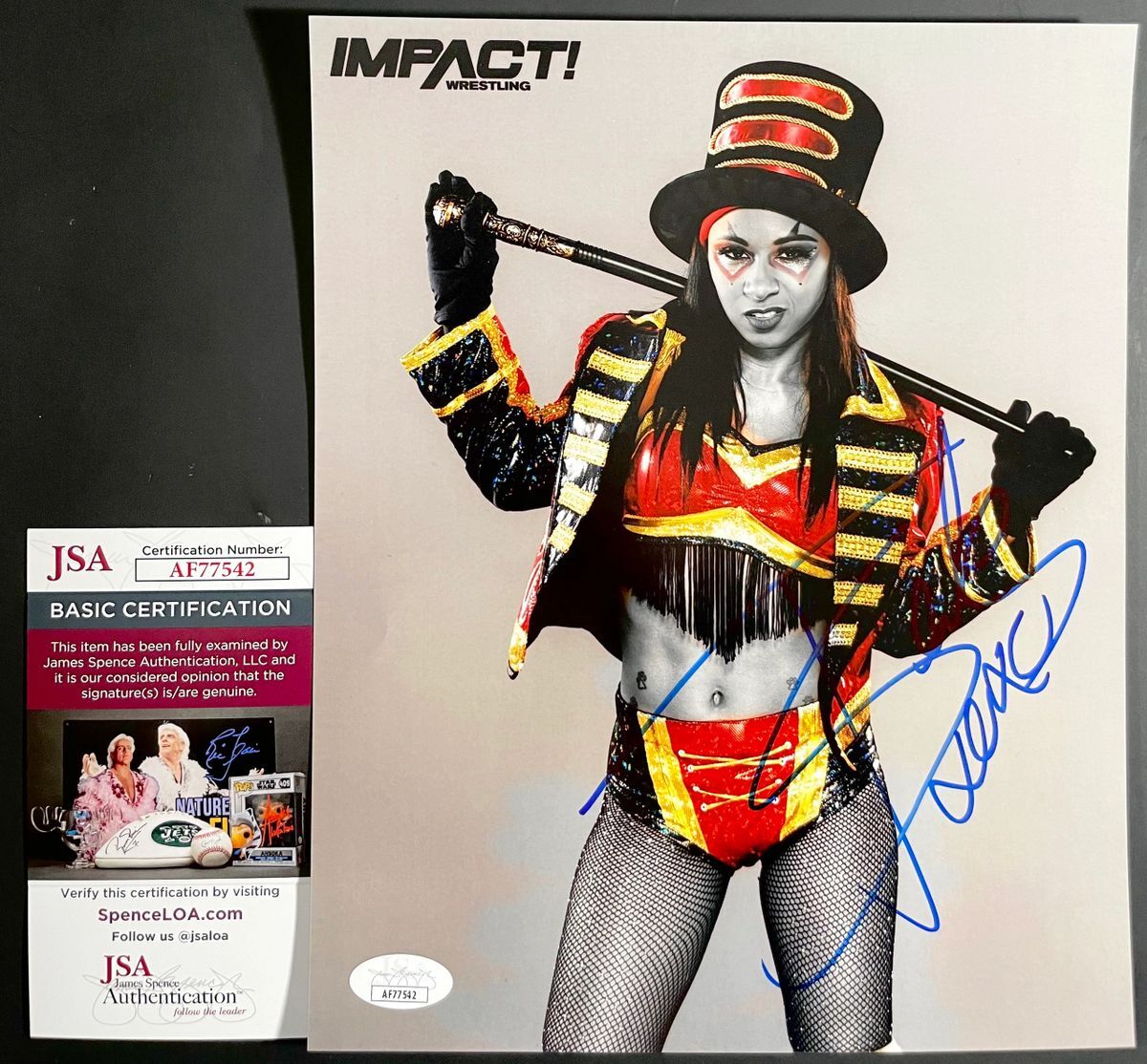 Professionally printed spotlight 8×10 photo, hand signed by former two time IMPACT Wrestling Knockouts Tag Team Champion as one half of Fire ‘N Flava, as well as former IMPACT Wrestling Knockouts World Champion, the “Boricua Badass” Tasha Steelz. This is a clean, well placed signature that really pops off of this crisp, professionally printed spotlight 8×10 photo. Item has been authenticated by James Spence Authentications, and includes the JSA Certificate Of Authenticity card.