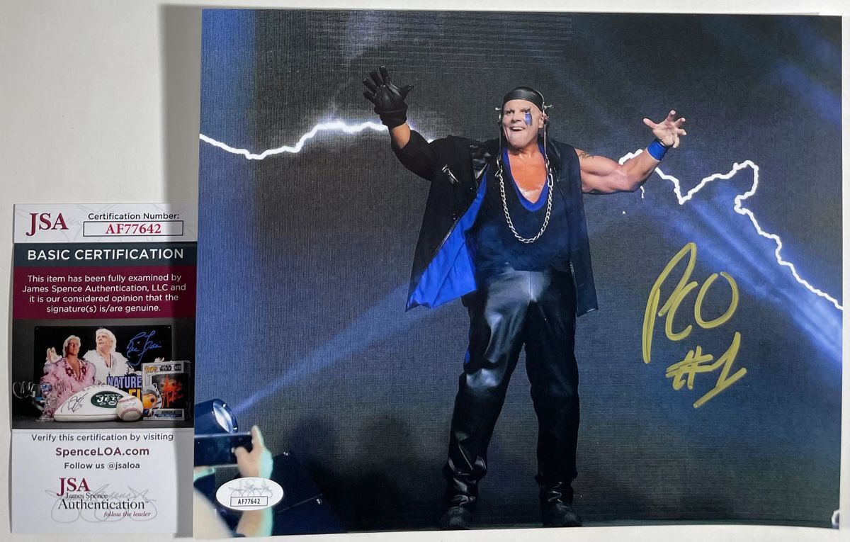 Professionally printed 8×10 photo, hand signed by IMPACT Wrestling competitor and a member of the faction Honor No More, “The French Canadian Frankenstein” PCO. Before his resurgence in Ring of Honor Wrestling (ROH) and IMPACT Wrestling, PCO competed in the WWF in the early nineties as one half of the World Tag Team Champion Quebecers, Quebecer Pierre, and later as Jean-Pierre LaFitte. This is a clean, well placed signature that really pops off of this crisp, professionally printed 8×10 photo. Item has been authenticated by James Spence Authentications and includes the JSA Certificate Of Authenticity card.