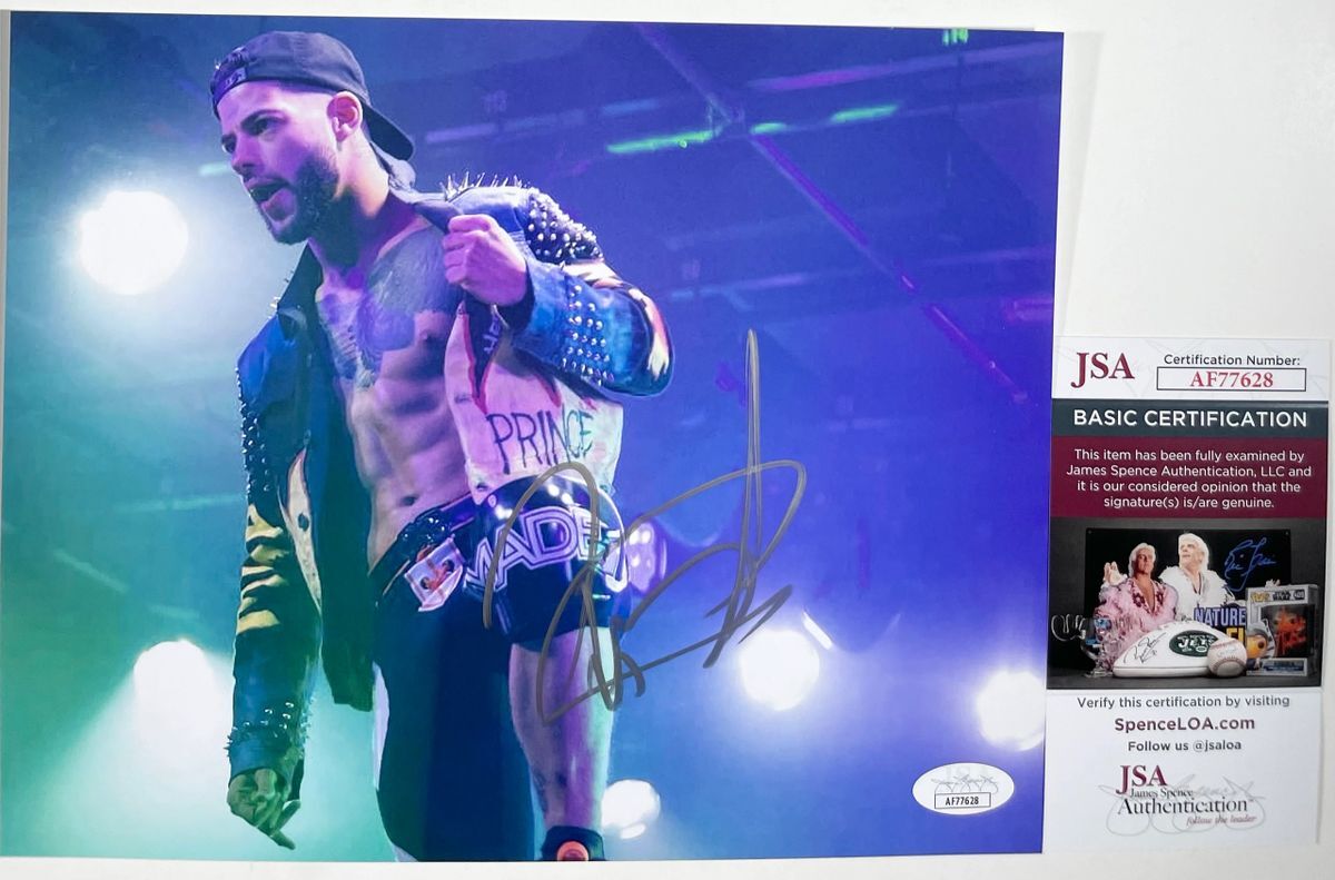 Professionally printed 8×10 photo, hand signed by IMPACT Wrestling X Division Champion Trey Miguel. This is a clean, well placed signature that really pops off of this crisp, professionally printed 8×10 photo. Item has been authenticated by James Spence Authentications and includes the JSA Certificate Of Authenticity card.