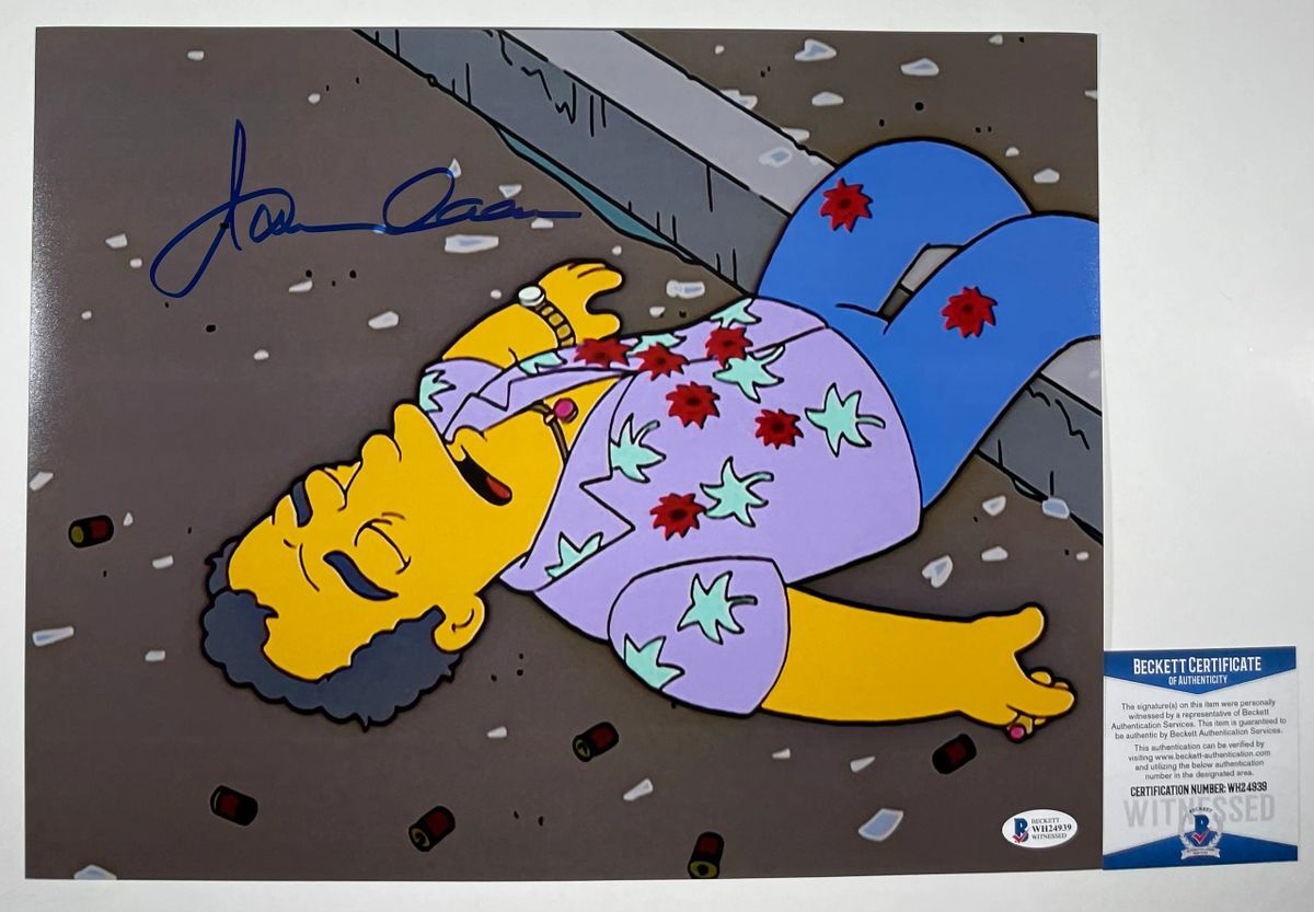 Professionally printed 11×14 photo, hand signed by actor James Caan who played the role of Sonny Corleone in the classic gangster film The Godfather. This is a clean, well placed signature that really pops off of this crisp, professionally printed Simpsons/Godfather Crossover 11×14 photo. Item was witnessed being signed by Beckett , the leader in authenticating services, and includes the Beckett Witness Certificate of Authenticity card. BAS COA# WH24939