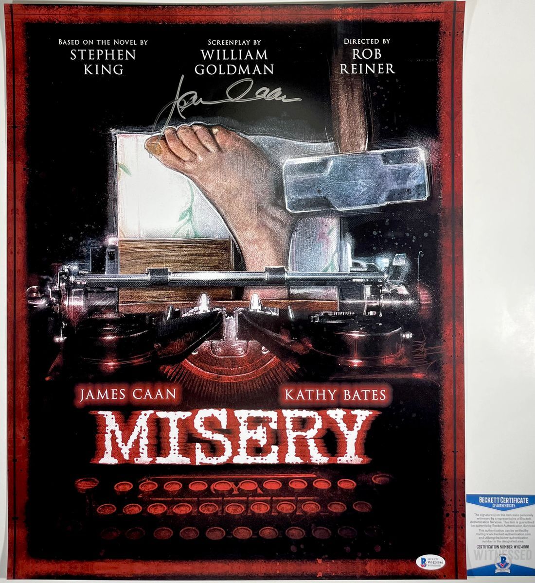 Professionally printed Misery 16×20 Movie Poster, hand signed in person by the late Great actor James Caan who starred in the 1990 film Misery as Paul Sheldon. This is a clean, well placed signature signed in a flowing Silver Recollections that really pops off of this crisp, professionally printed Misery 16×20 movie poster. Item was witnessed being signed by Beckett Authentication Services, one of the most reputable third-party authentication companies in the world and includes the Beckett Witness Certificate of Authenticity card.