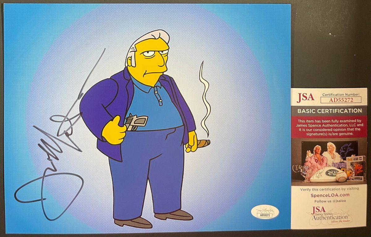 Professionally printed 8×10 photo, hand signed by actor Joe Mantegna who is credited as the voice of Fat Tony on the classic FOX animated television series, The Simpsons. This is a clean, well placed signature, that really pops off of this crisp, professionally printed 8×10 photo. Item has been authenticated by James Spence Authentications, and includes the JSA Certificate Of Authenticity card. JSA COA# AD55272