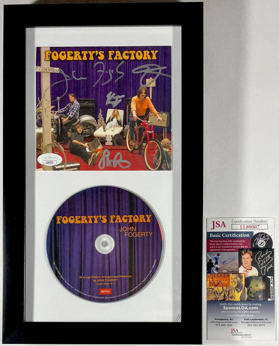 John Fogerty “Fogerty’s Factory” CD and signed CD Cover, hand signed in person by legendary Musician John Fogerty of CCR fame, his wife Julie Fogerty, and children Shane Fogerty, Tyler Fogerty, and Kelsey Fogerty. This is five clean, well paced signatures, signed in a matching flowing Silver that really pops off of this signed John Fogerty “Fogerty’s Factory” CD Cover, inside of this amazing framed and matted display which includes the CD. Item has been authenticated by James Spence Authentications, one of the most reputable third-party authentication companies in the world and includes the JSA Certificate Of Authenticity card.