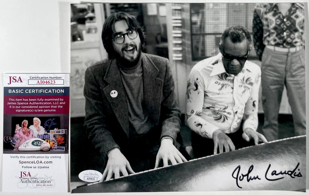 Professionally printed black and white 8×10 photo, hand signed in person by Director John Landis who directed The Blues Brothers film. Mr. Landis also directed Trading Places, Animal House, and Schlock just to name a few. This is a clean, well placed signature, signed in a flowing Black Sharpie that really pops off of this crisp, professionally printed black and white 8×10 photo. Item has been authenticated by James Spence Authentications, one of the most reputable third party authentication companies in the world, and includes the JSA Certificate of Authenticity card. JSA COA# AI04623