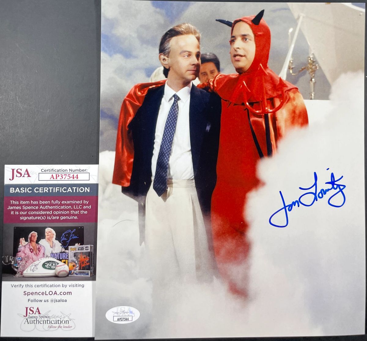 Professionally printed 8×10 photo, hand signed by actor Jon Lovitz who was a Saturday Night Live (SNL) cast member from the years 1985 through 1990. This is a clean, well placed signature, that really pops off of this crisp, professionally printed 8×10 photo Item has been authenticated by James Spence Authentication, and includes the JSA Certificate of Authenticity card. JSA COA# AP37544