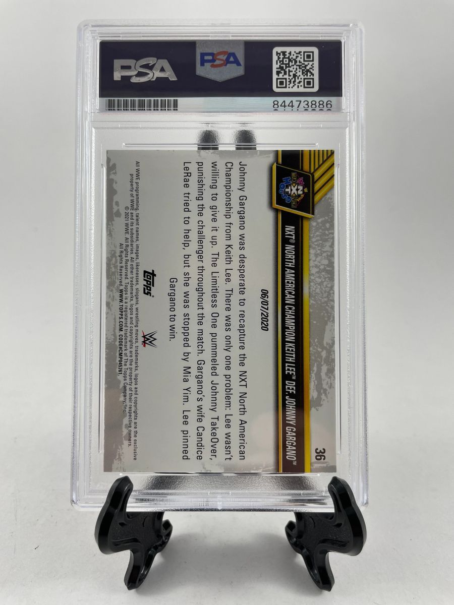 Keith Lee 2021 Topps WWE NXT Trading Card #36, hand signed in person by former WWE Superstar Keith Lee who now wrestles for All Elite Wrestling (AEW). This is a clean, well placed on card signature, that really pops off of this 2021 Topps WWE NXT Trading Card. Stand is for display purposes only and is not included. Item has been authenticated and slabbed / encapsulated by PSA/DNA. PSA/DNA COA# 84473886