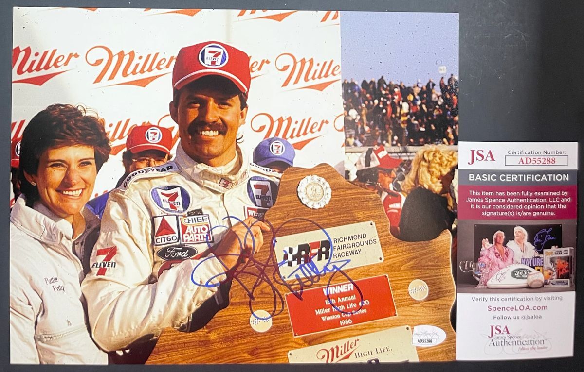Professionally printed 8×10 photo, hand signed by former NASCAR driver and son of “The King” Richard Petty, current NASCAR commentator Kyle Petty. This is a clean, well placed signature that really pops off of this crisp, professionally printed 8×10 photo. Item has been authenticated by James Spence Authentications , and includes the JSA Certificate of Authenticity card.