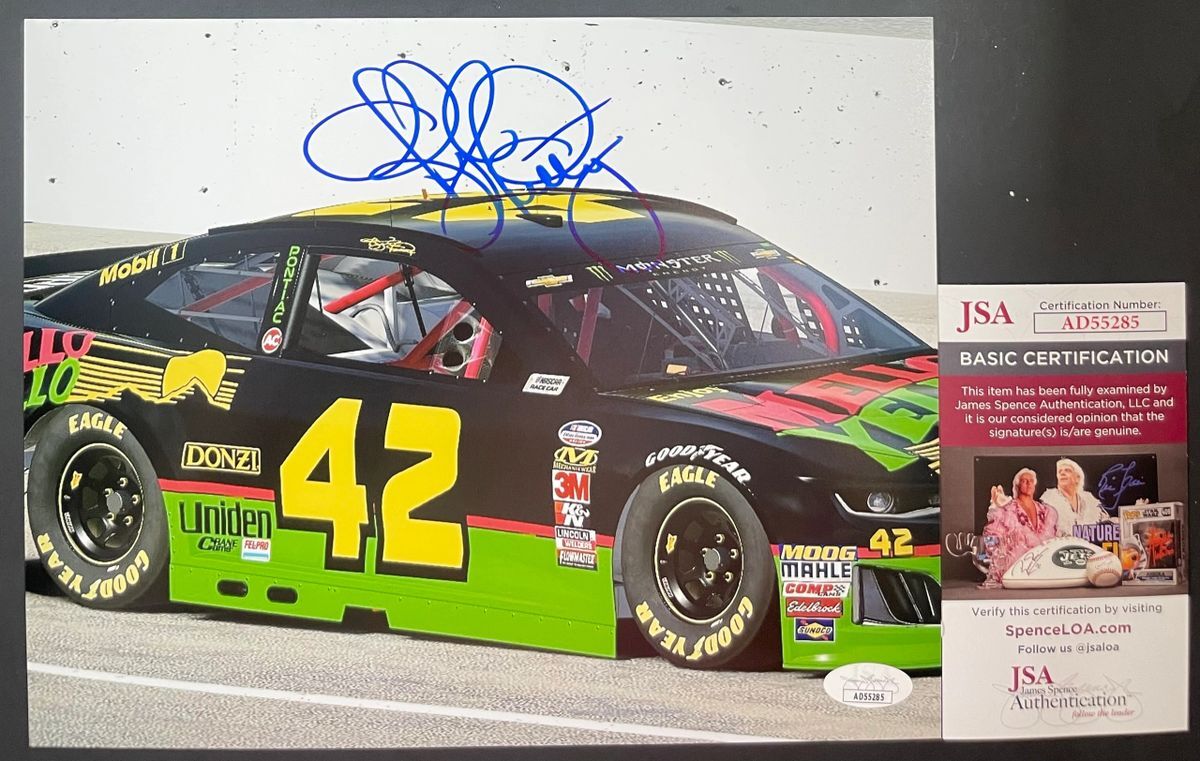 Professionally printed 8×10 photo, hand signed by former NASCAR driver and son of “The King” Richard Petty, current NASCAR commentator Kyle Petty. This is a clean, well placed signature that really pops off of this crisp, professionally printed 8×10 photo. Item has been authenticated by James Spence Authentications , and includes the JSA Certificate of Authenticity card.