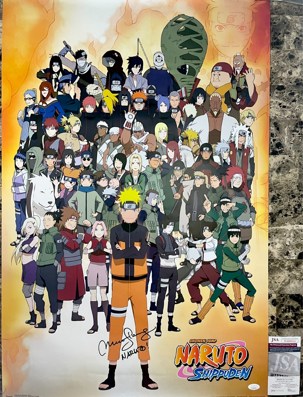 Officially licensed Naruto Shippuden 24×36 poster, hand signed in person by voice actress Maile Flanagan who is credited as the voice of Naruto in the US version of the widely popular Television Series, Naruto Shippuden. This is a clean, well placed signature with character name “Naruto” inscription, signed in a flowing Black Sharpie that really pops off of this crisp, professionally printed Naruto Shippuden 24×36 poster. Poster will be shipped rolled in a tube. Item was witnessed being signed by James Spence Authentication, one of the most reputable third-party authentication companies in the world, and includes the JSA Witness Certificate of Authenticity card.