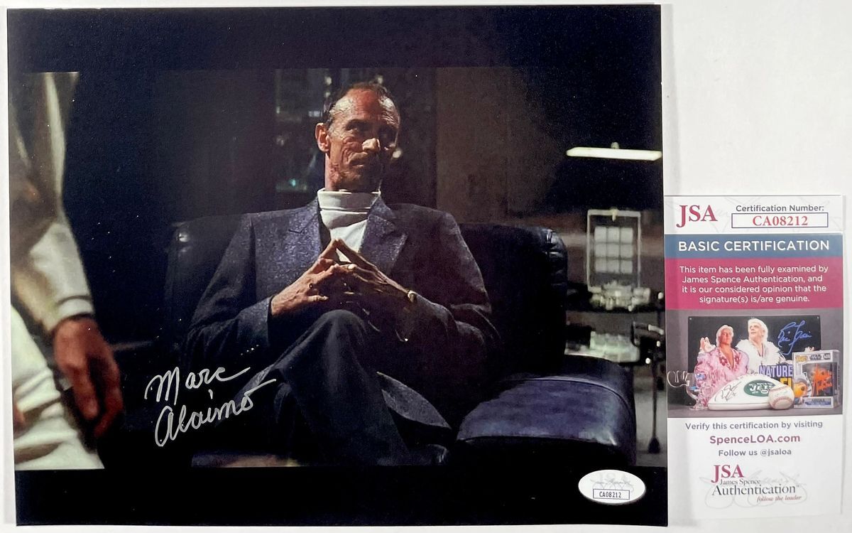 Professionally printed 8×10 photo, hand signed in person by actor Marc Alaimo who played the role of Lopez in the 1989 film, Tango & Cash. This is a clean, well placed signature, signed in a flowing Silver that really pops off of this crisp, professionally printed 8×10 photo. Item has been authenticated by James Spence Authentications, one of the most reputable third-party authentication companies in the world and includes the JSA Certificate of Authenticity card.