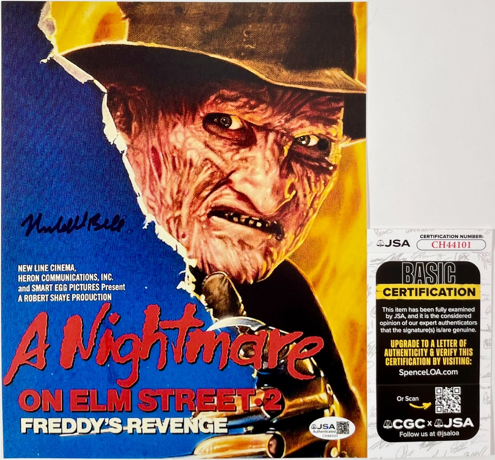 Professionally printed A Nightmare On Elm Street 2: Freddy’s Revenge 8×10 Mini Movie Poster Photo, hand signed in person by actor Marshall Bell who played the role of Coach Schneider in the 1985 Horror film, A Nightmare On Elm Street 2: Freddy’s Revenge. This is a clean, well placed signature, signed in a flowing Black Sharpie that really pops off of this crisp, professionally printed A Nightmare On Elm Street 2: Freddy’s Revenge 8×10 Mini Movie Poster Photo. A clear plastic 8×10 toploader is included with purchase to safely ship the photo inside of. Item has been authenticated by James Spence Authentications, one of the most reputable third-party authentication companies in the world, and includes the JSA Certificate of Authenticity card.