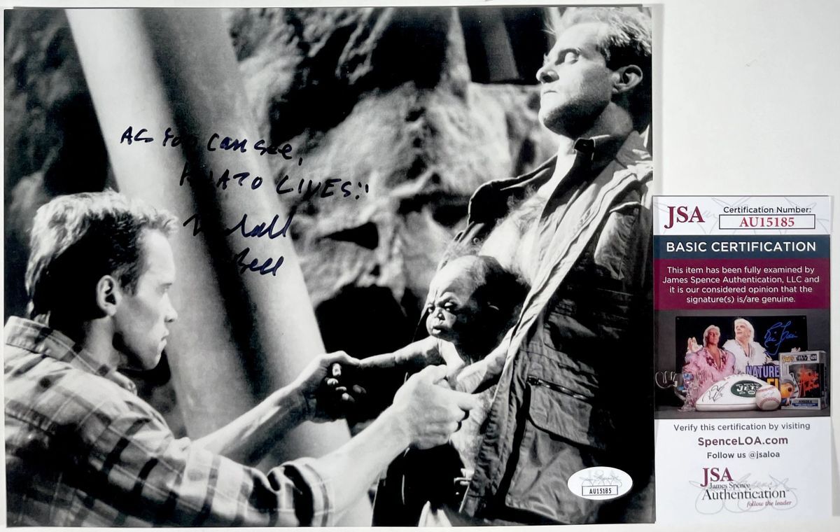 Professionally printed black and white 8×10 photo, hand signed in person by actor Marshall Bell who played the roll of George aka Kuato in the 1990 Film, Total Recall. This is a clean, well placed signature, with a “As you can see, KUATO LIVES!” inscription, signed in a flowing Black Sharpie that really pops off of this crisp, professionally printed black and white 8×10 photo. Item has been authenticated by James Spence Authentications, one of the most reputable third party authentication companies in the world, and includes the JSA Certificate Of Authenticity card.