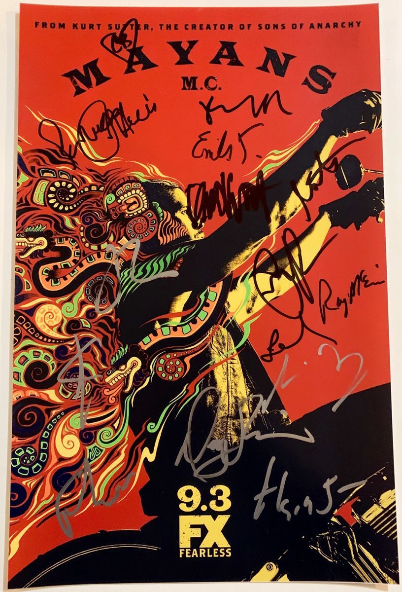 Professionally printed Mayans M.C. Season 2 11×17 poster, hand signed by fifteen members of the cast. This is fifteen clean, well placed signatures that really pop off of this crisp, professionally printed Mayans M.C. Season 2 11×17 poster. Collectible is signed by the following (15) members of the cast. 1. J.D Pardo – Ezekiel “Ez” Reyes 2. Clayton Cardenas – Angel Reyes 3. Emilio Rivera – Marcus Alvarez 4. Michael Irby – Obispo “Bishop” Losa 5. Carla Baratta – Luisa “Adelita” Espina 6. Sarah Bolger – Emily Thomas 7. Danny Pino – Miguel Galindo 8. Frankie Loyal – Hank “Tranq” Loza 9. Elgin James – Writer/Director/Producer 10. Emily Tosta – Leticia Cruz 11. Michael Ornstein – Chuck “Chucky” Marstein 12. Salvador Chacon – Pablo 13. Gino Vento – Nestor Oceteva 14. Ray McKinnon – Lincoln “Linc” Potter 15. Richard Cabral – Johnny “Coco” Cruz Guaranteed to pass any reputable third party authenticator like Beckett or JSA.