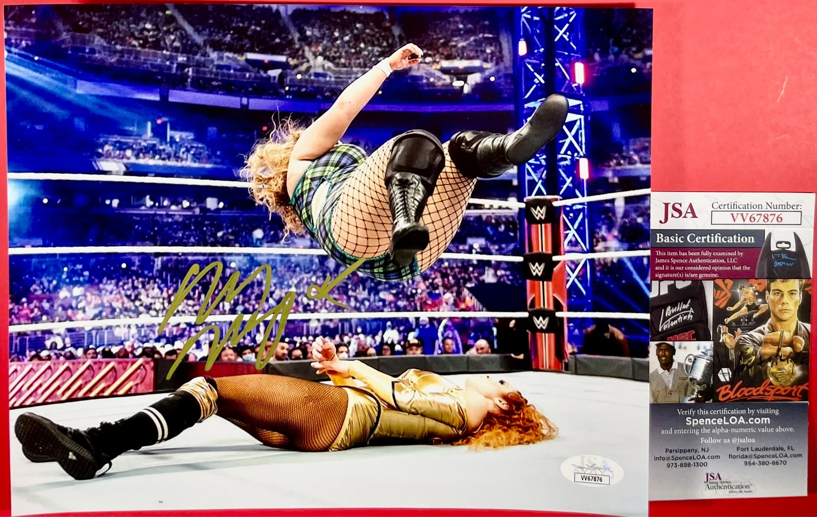 Professionally printed 8×10 Photo, hand signed in person by WWE NXT Superstar Doudrop who currently competes under the ring name Piper Niven, the enforcer of Chelsea Green’s Green Regime faction.  Before being called up to the main roster, Piper wrestled for NXT UK as Viper where she was a one-time NXT UK Women’s Champion.  This is a clean, well placed signature, signed in a flowing Gold Recollections that really pops off of this crisp, professionally printed 8×10 Photo.  A clear plastic 8×10 toploader is included with purchase to safely ship the photo inside of.  Item has been authenticated by James Spence Authentication, one of the most reputable third-party authentication companies in the world, and includes the JSA Certificate Of Authenticity card.