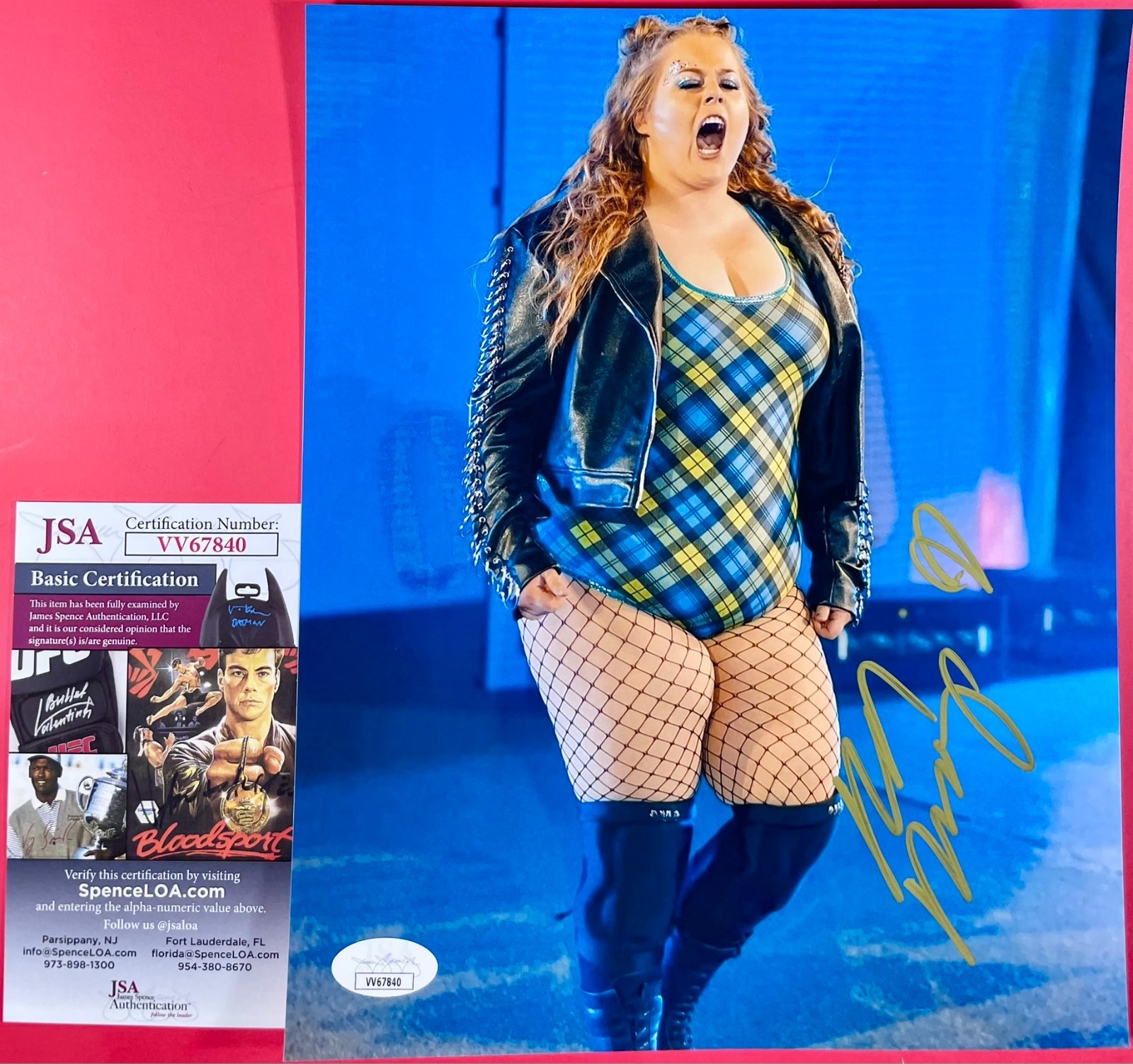 Professionally printed 8×10 Photo, hand signed in person by WWE NXT Superstar Doudrop who currently competes under the ring name Piper Niven, the enforcer of Chelsea Green’s Green Regime faction.  Before being called up to the main roster, Piper wrestled for NXT UK as Viper where she was a one-time NXT UK Women’s Champion.  This is a clean, well placed signature, signed in a flowing Gold Recollections that really pops off of this crisp, professionally printed 8×10 Photo.  A clear plastic 8×10 toploader is included with purchase to safely ship the photo inside of.  Item has been authenticated by James Spence Authentication, one of the most reputable third-party authentication companies in the world, and includes the JSA Certificate Of Authenticity card.