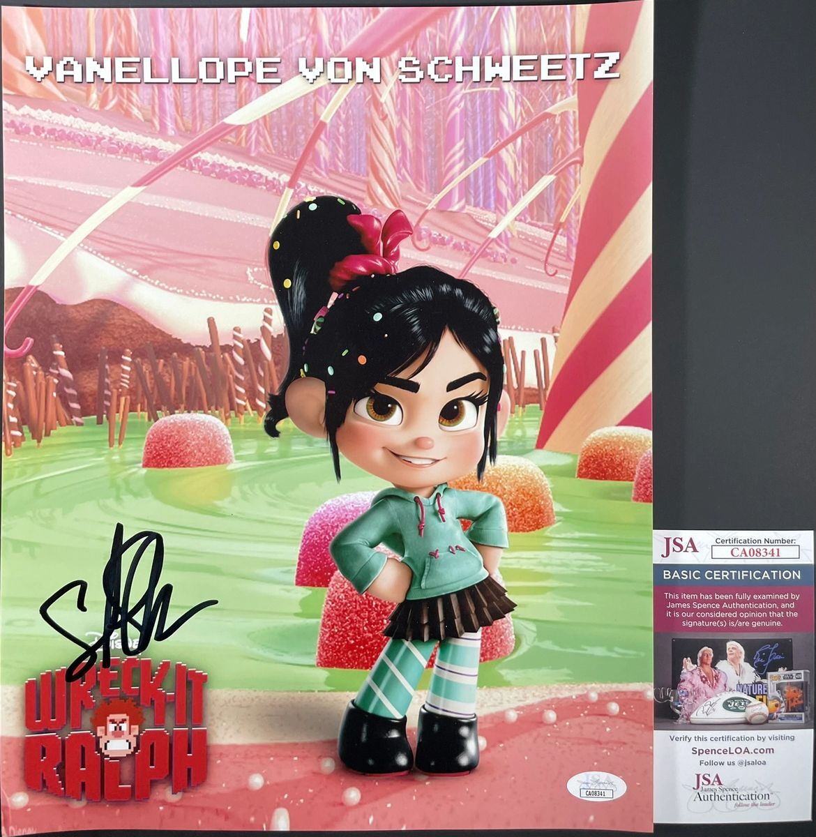 Professionally printed 11×14 Photo, hand signed in person by actress Sarah Silverman who is credited as the voice of Vanellope Von Schweetz in the 2012 Disney PIXAR film Wreck It Ralph. This is a clean, well placed signature, signed in a flowing Black Sharpie that really pops off of this crisp, professionally printed 11×14 photo. Item has been authenticated by James Spence Authentications, one of the most reputable third-party authentication companies in the world and includes the JSA Certificate of Authenticity Card. JSA COA# CA08341