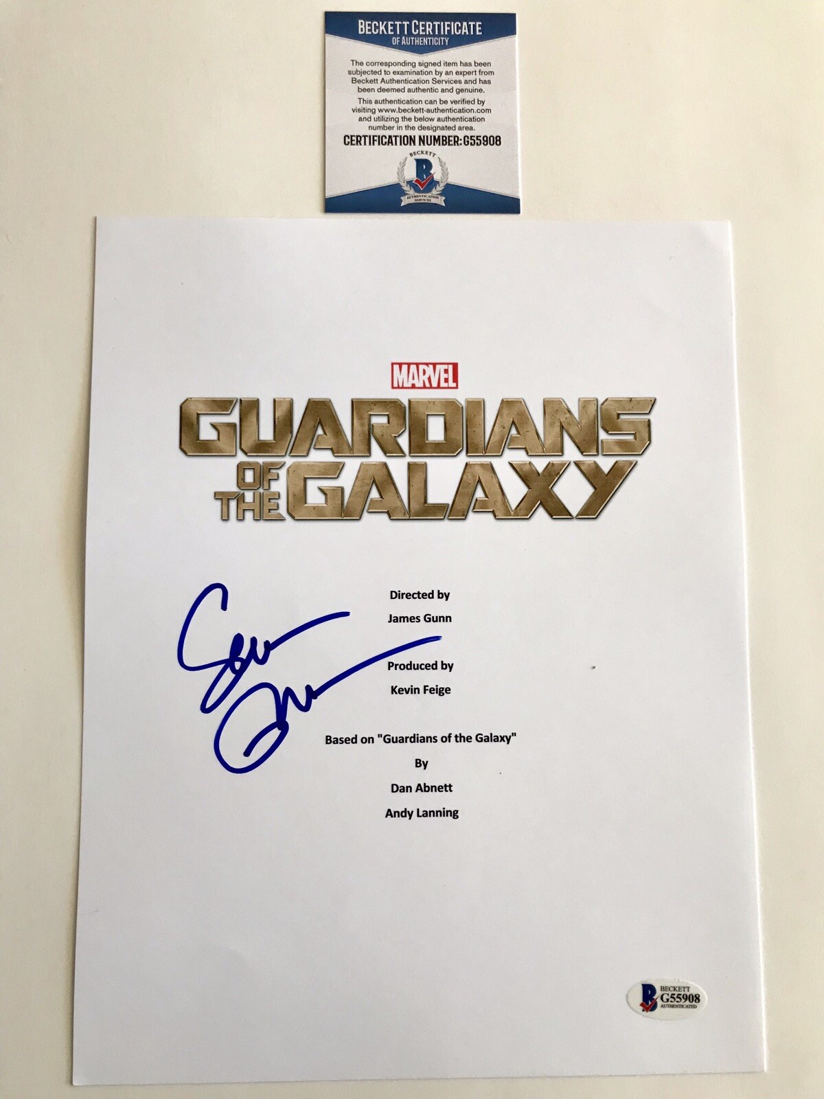 Personally has this beautiful 8.5X11 Marvel’s Guardians of the Galaxy Movie Script Cover hand signed by the extremely talented actor from the film… Sean Gunn. Sean not only had a role as Kraglin in the film, but wore the green suit most of the time standing in during Rocket the Racoons parts seeing as Bradley Coopers work was all voiceover stuff. This benefited the other actors tremendously. A must own piece for any collector or Fan. Perfect for binding and turning in to a full script. Script cover has been authenticated by Beckett.