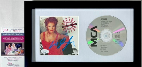 Sheena Easton “The Lover In Me” CD and signed CD Booklet, hand signed in person by two-time Grammy Award winning artist, Sheena Easton.  This is a clean, well paced signature, signed in a flowing Blue 2MM DECCO Paint Pen that really pops off of this Sheena Easton signed “The Lover In Me” CD Booklet.  The signed “The Lover In Me” CD Booklet and CD have been mounted inside of this sleek, ready to hang, framed and matted display.  Item has been authenticated by James Spence Authentication, one of the most reputable third-party authentication companies in the world, and includes the JSA Certificate Of Authenticity card.